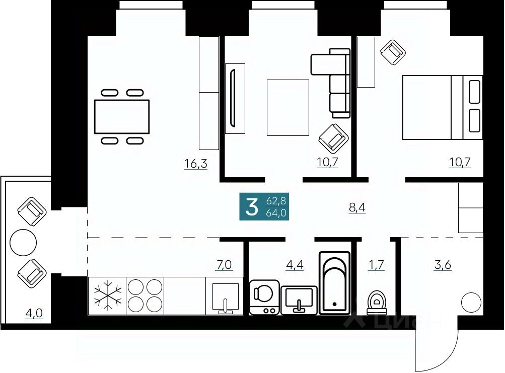 Общая площадь64 м²