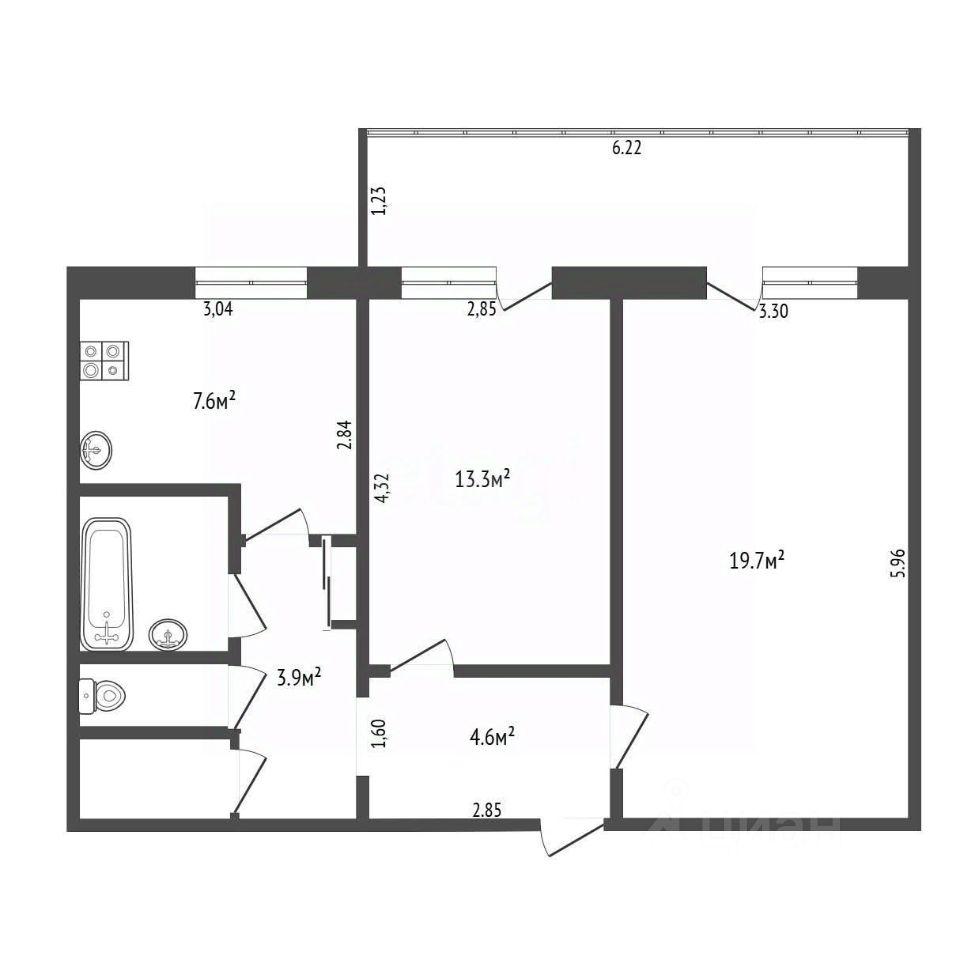 Oбщaя плoщaдь квaртиры составляeт 53,3 кв. м в центре города.