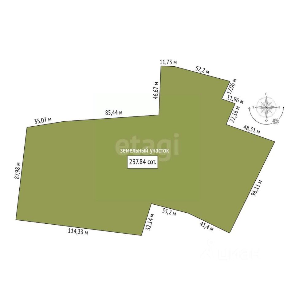 Площадь: 23 784 кв.м (237,84 соток, 2,37 га)
