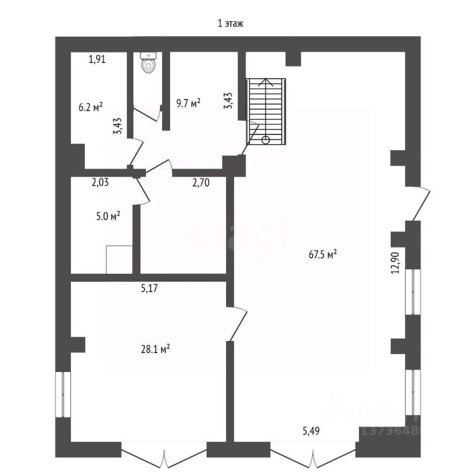 На втором этаже вас ждет лестничная площадка с окном и кабинет, площадью 19 кв.м., который отлично подойдет для работы или учебы.
