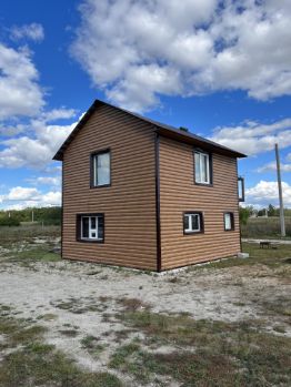 Материал стен- газоблок, утеплен, обшит металлосайдингом под дерево, окна из качественного профиля, скважина с чистейшей водой (8м), септик, теплый пол, электричество (380 кВ), сан. узел в доме, душ, горячая / холодная вода.