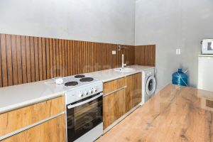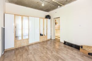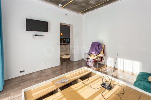 Объект отличается рациональной планировкой, объединяющей две спальни и просторную гостиную, совмещенную с кухней. Кухонный гарнитур выполнен на заказ и уже встроен, что обеспечивает готовность к использованию. В отделке выполнен частичный ремонт, что позволяет новому владельцу завершить косметические работы, такие как монтаж натяжного потолка, в кратчайшие сроки и по собственному вкусу.