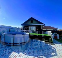 На благоустроенной территории площадью 10 соток расположен гостевой дом с баней (есть с/у, кухня и спальное место), летний бассейн и открытая терраса.