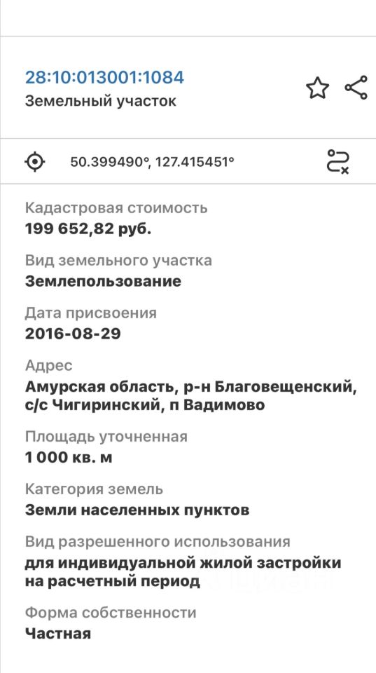 Кадастровый номер - 28:10:013001:1084