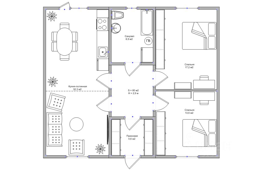 - Высота потолков - 2,9 м