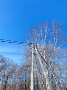 Возле участка стоит столб электропередачи.