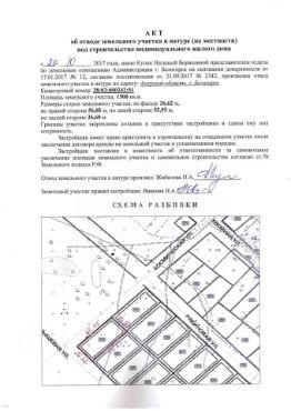 Участок ровный. Угловой- находится в начале улицы. Подходит под строительство дома или дачи. Территория выделена разметкой.
