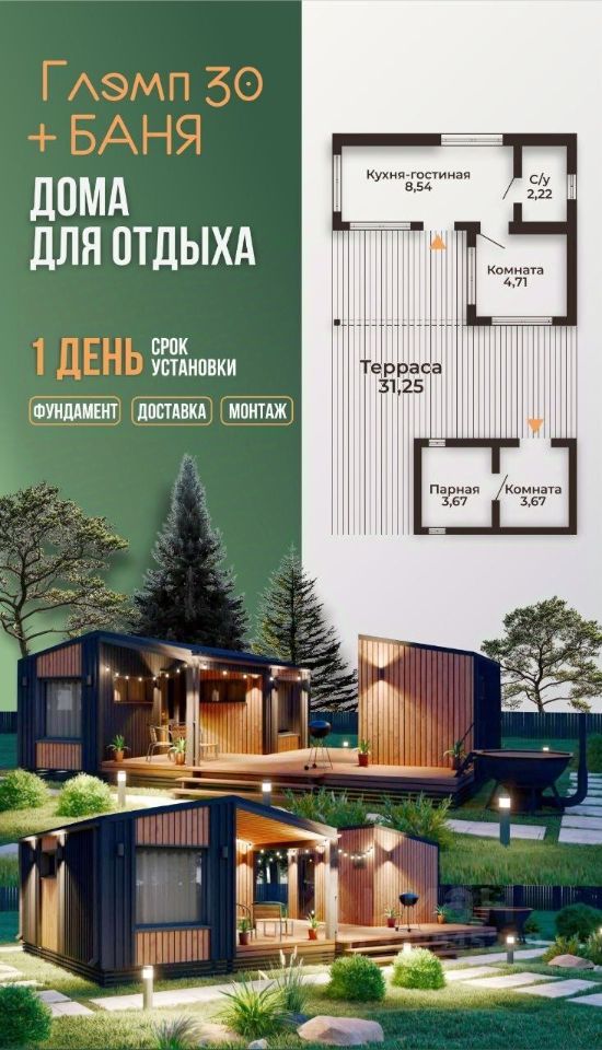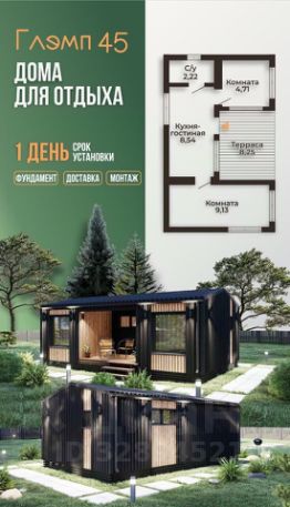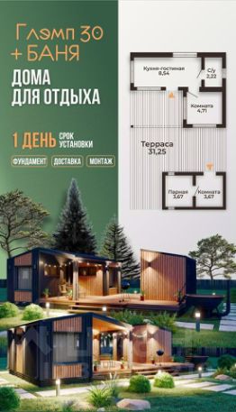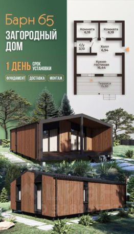 Арт. 93471615. Дом - барн 65 кв.м, 2 комнаты, кухня-гостиная.