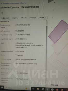 Данные получены с сайта ГИС Торги. Лот 1, земельный участок с кадастровым номером 27:05:0601093:859, площадью 6138,0 кв. м., расположенный по адресу: Хабаровский край, Верхнебуреинский район, рп. Чегдомын, ул. Заводская, 22Д, вид разрешённого использования под...