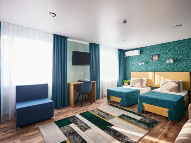 Элегантный однокомнатный номер общей площадью 35 кв.м., сочетающий современный стиль и уют, состоит из просторной прихожей, спальни с зоной для отдыха, оборудованной кухонным гарнитуром, большой ванной комнатой с душевой кабиной. Номер содержит все необходимое для комфортного проживания и отдыха: спальня-гостиная с диваном, две односпальные кровати (90*200), полный санузел с душевой кабиной, ЖК телевизор, телефон, холодильник, микроволновая печь, электроплита, набор посуды, кондиционер, Wi-fi, бутилированная вода, фен, чайная станция. Из окон номеров открывается вид на набережную реки Амур и приграничный город Хэйхэ (КНР).